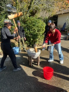 先日、仲のいい友達たちと餅つき大会を開催しました. もち米を3㎏蒸して、みんなで交代しながらうすに入れたもち米をつきあげました・・・