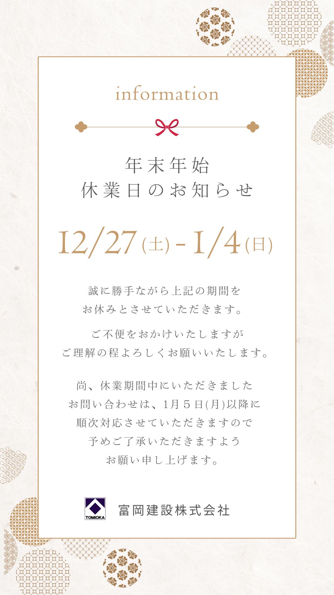 年末年始休業のお知らせ